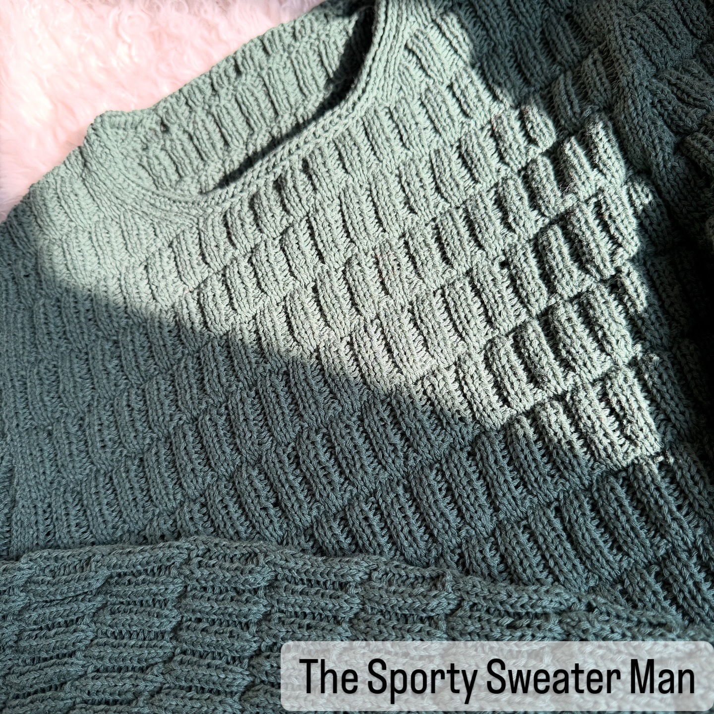 The Sporty Sweater Man er strikket med en tråd Palet fra Isager. Jeg har valgt at strikke den med et ribmønster der forskydes – det giver et super maskulint udtryk. Italiensk aflukning og i halskanten en I-cord med drejet rib. Den drejede ribkant i halsudskæringen understreger det maskuline mønster og udtryk på kroppen.