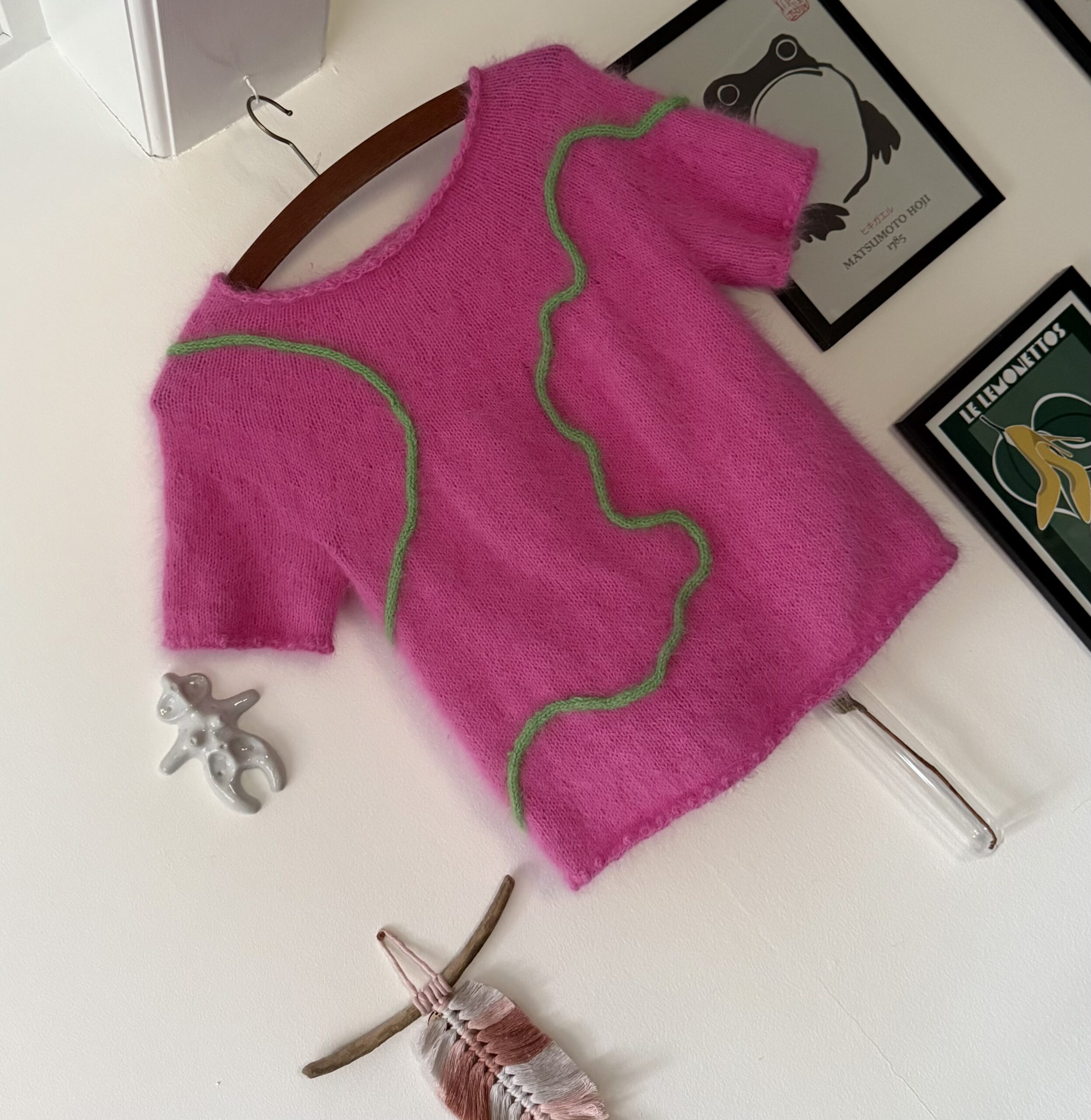 Nothing But Everything Tee er en meget feminin og romantisk bluse i glatstrik med de fineste bobler på alle kanter og et meget smukt rundt bærestykke. Blusen er som udgangspunkt strikket med det überlækre Angora garn fra Mondial, men alternativt garn kan også bruges.